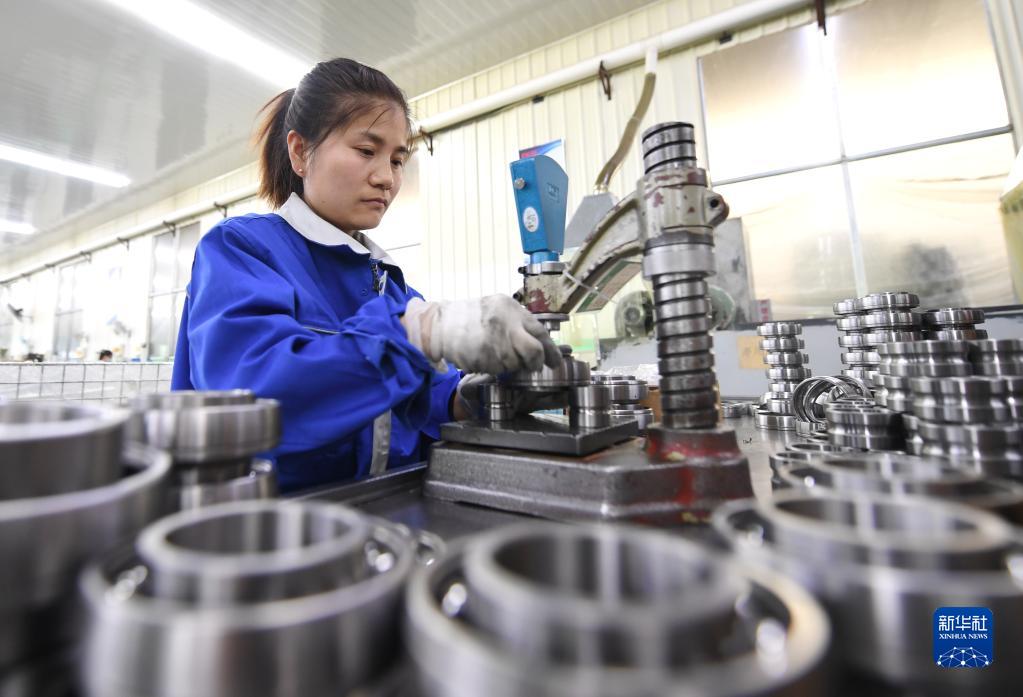 4月21日,河北臨西縣一家軸承生產(chǎn)制造企業(yè)工人在生產(chǎn)車(chē)間工作。