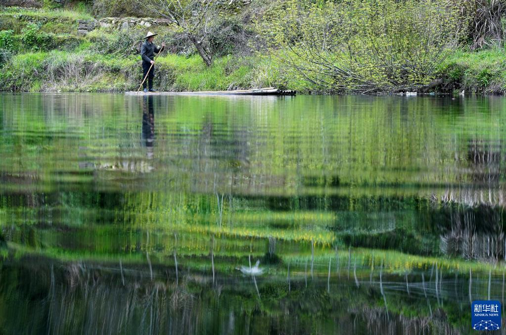 在當地紫陽(yáng)鎮上坦村,60歲的馬青海每天都會(huì )到家門(mén)口的小河里劃竹排,他說(shuō)這是他們村里人特有的“健身”方式。