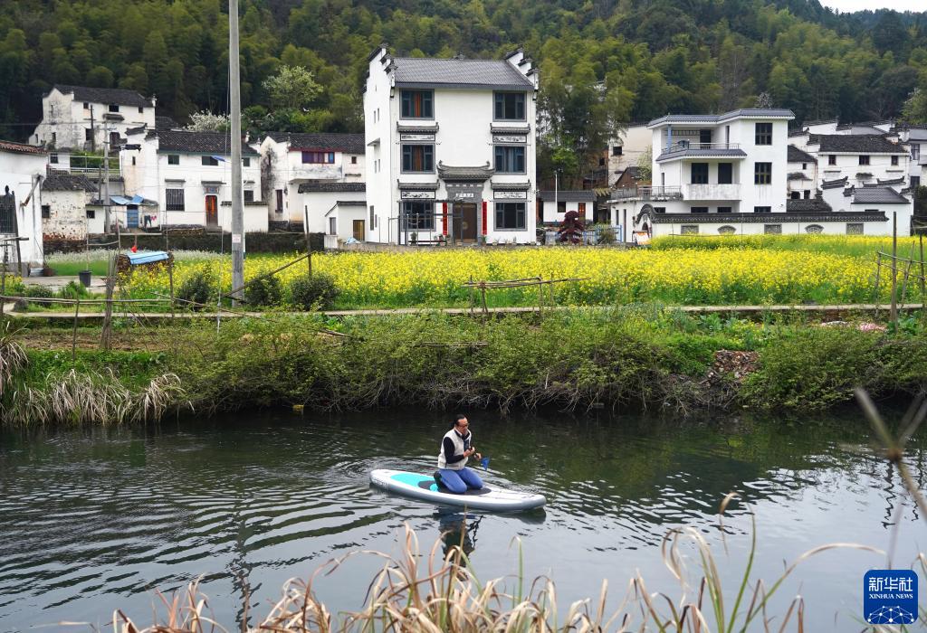 趁著(zhù)婺源全縣大力推進(jìn)鄉村振興的東風(fēng),西北人劉龍2019年來(lái)到婺源縣江灣鎮南坑村經(jīng)營(yíng)民宿。劉龍是位80后,愛(ài)玩兒槳板的他發(fā)現這項運動(dòng)與當地的劃竹排有相似之處。他的民宿前恰好有一條小河流過(guò),他便嘗試在河中劃槳板,和大自然“親密接觸”。夏天時(shí),很多民宿客人也跟著(zhù)他玩起來(lái),劃槳板逐漸成為民宿的一個(gè)“賣(mài)點(diǎn)”。