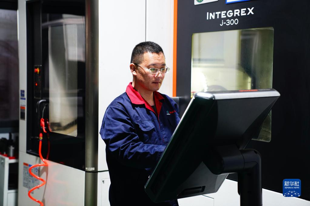 4月21日,在山東富瑞工貿有限公司,工人操作設備加工閥門(mén)配件。