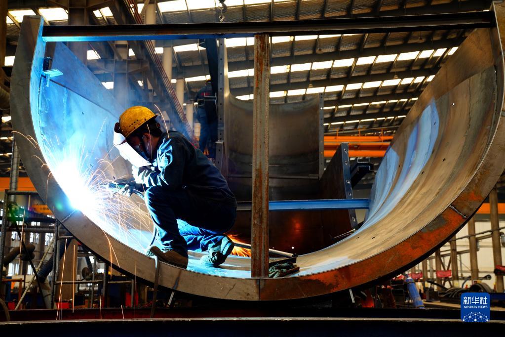 4月21日,在山東海德重工有限公司,工人在加工高鐵墩帽。