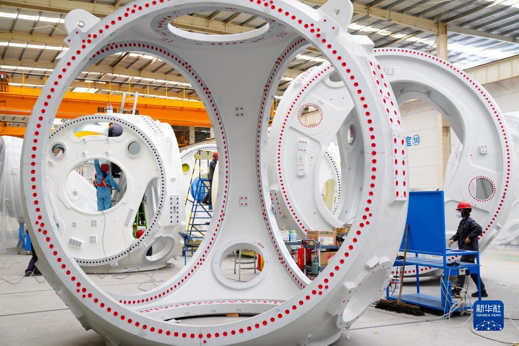 4月20日,在惠民縣風(fēng)電裝備制造產(chǎn)業(yè)園涂裝車(chē)間,工人在涂裝風(fēng)電輪轂。