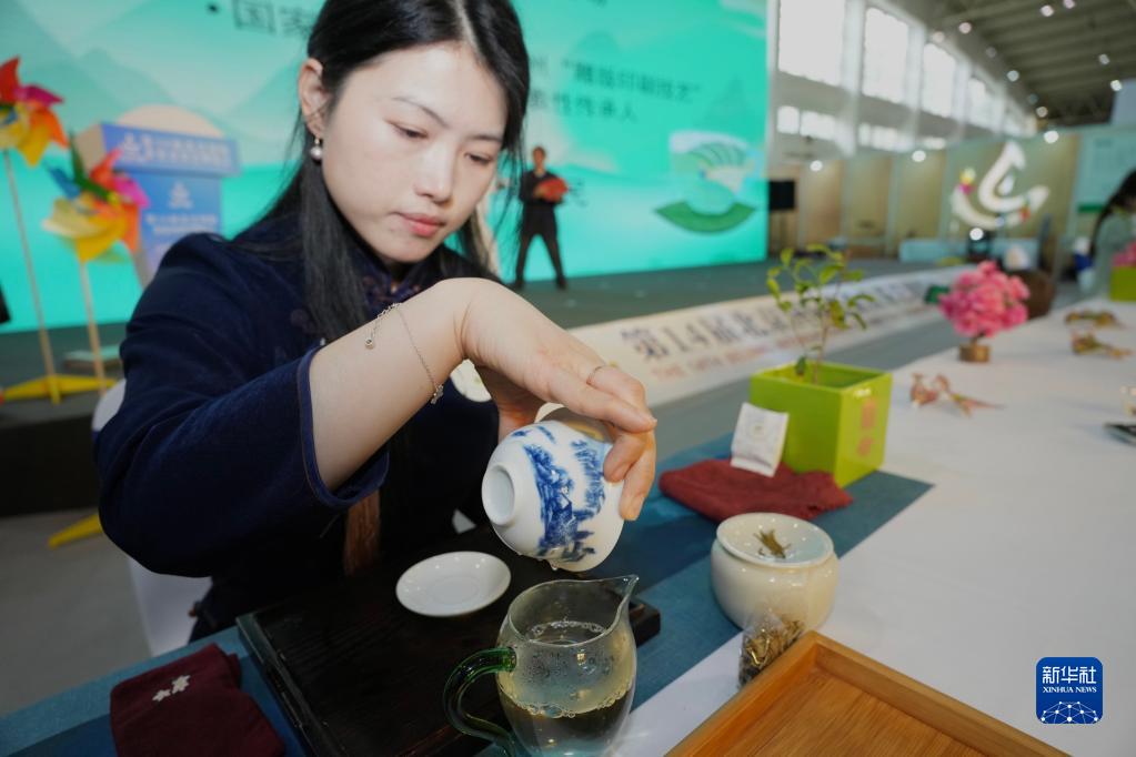 4月21日,在北京茶博會(huì )“春茶臨京城 共品非遺茶”活動(dòng)上,茶藝師在倒茶。