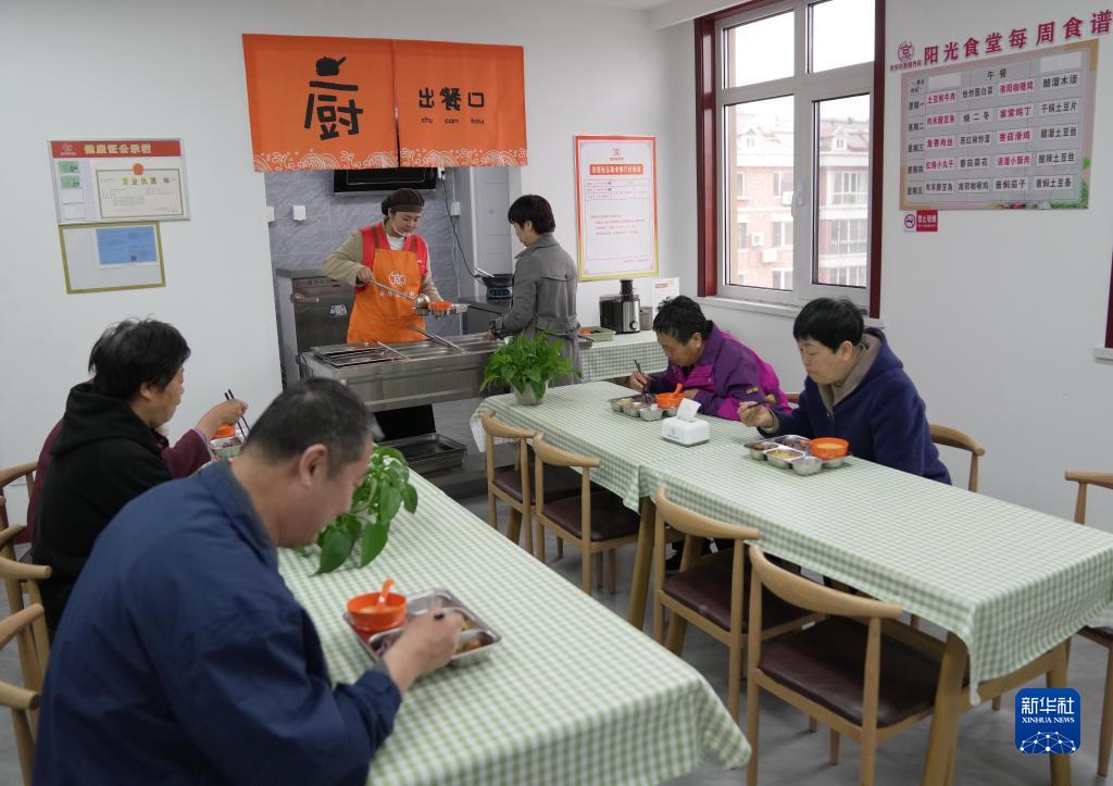 4月21日,秦皇島市北戴河區安居社區的幾位老年人在日間照料服務(wù)中心用餐。