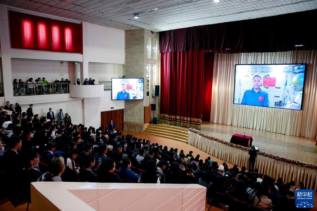 4月20日,吉爾吉斯斯坦首都比什凱克國立大學(xué)禮堂舉行天宮對話(huà)——神舟十五號航天員乘組與上海合作組織國家青少年問(wèn)答活動(dòng)。