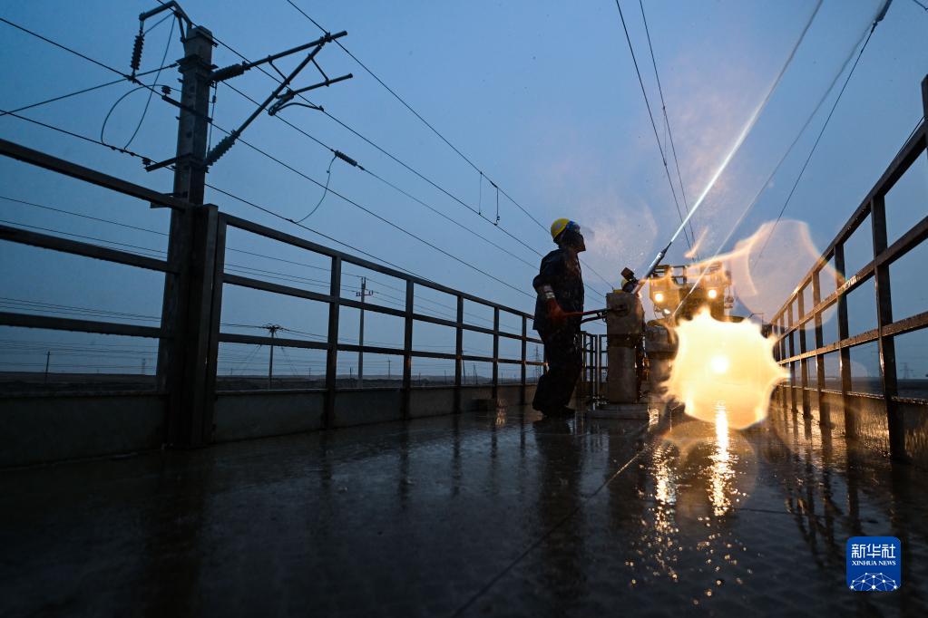 近日,為確保青藏鐵路牽引供電設備運行正常,保障青藏鐵路的暢通運行,中國鐵路青藏集團有限公司西寧供電段格爾木大修車(chē)間大修網(wǎng)工區組織人員利用沖洗車(chē)對青藏鐵路察爾汗段接觸網(wǎng)絕緣子設備附著(zhù)的鹽污進(jìn)行清洗作業(yè)。