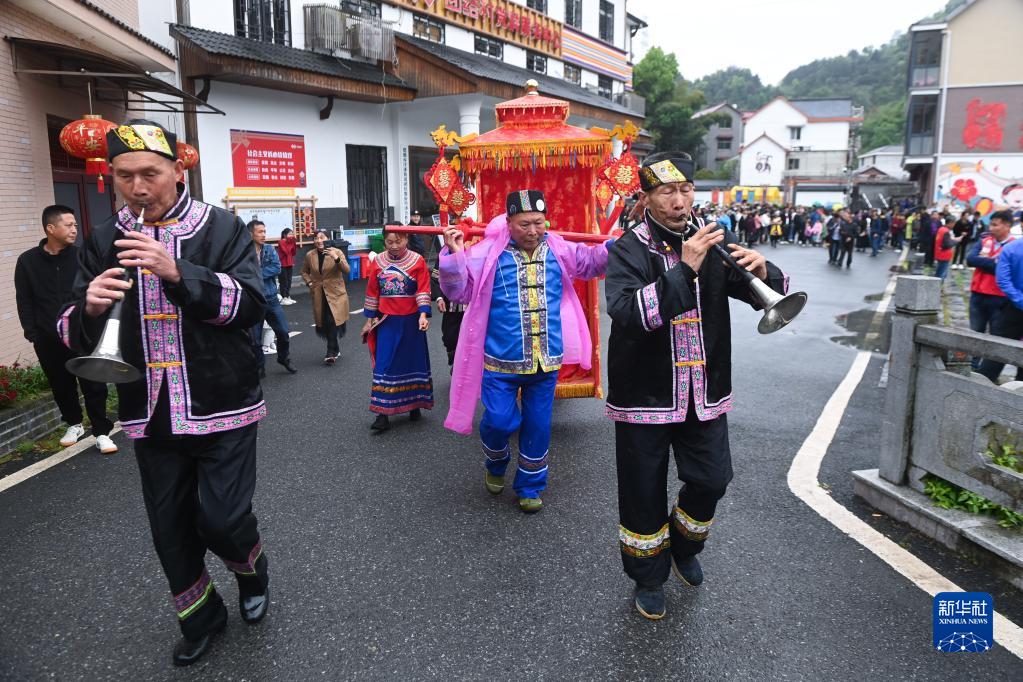 4月22日,團結村“三月三”旅游文化周上進(jìn)行的畬族婚禮展示。