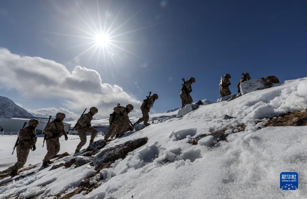 4月13日,紅其拉甫邊防連的戰士在巡邏。