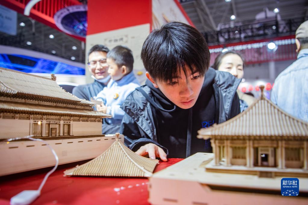 4月22日,觀(guān)眾在北京館近距離觀(guān)看展品。