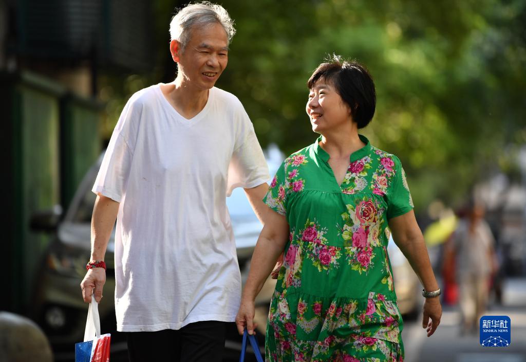 陳言人(左)、伍學(xué)花夫妻上完課后準備回家(資料照片)。