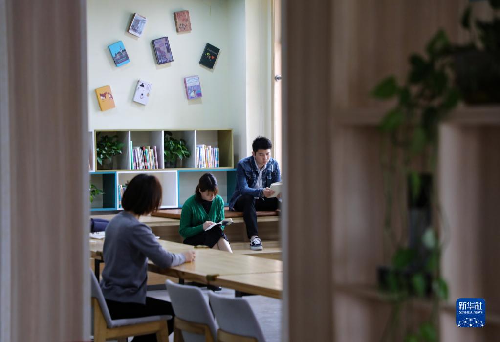 4月21日,人們在安徽省合肥市肥西縣柏堰科技園明珠書(shū)房閱讀空間內閱讀。
