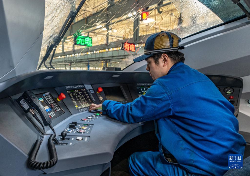 4月22日,在沈陽(yáng)動(dòng)車(chē)段沈陽(yáng)北動(dòng)車(chē)運用所,技術(shù)人員對列車(chē)雨刷器工作狀態(tài)進(jìn)行確認。