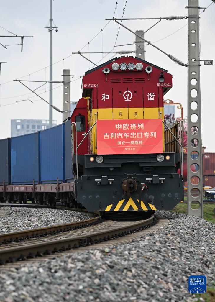 4月23日,中歐班列長(cháng)安號吉利汽車(chē)出口專(zhuān)列從西安國際港站駛出。