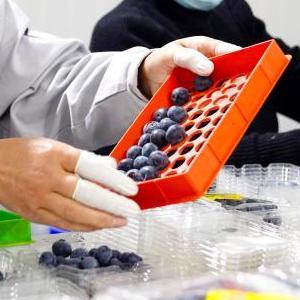 4月23日,村民在惠民縣淄角鎮鄉村振興產(chǎn)業(yè)示范基地采摘藍莓。