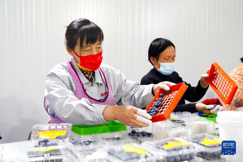 4月23日,村民在惠民縣淄角鎮鄉村振興產(chǎn)業(yè)示范基地分揀藍莓。