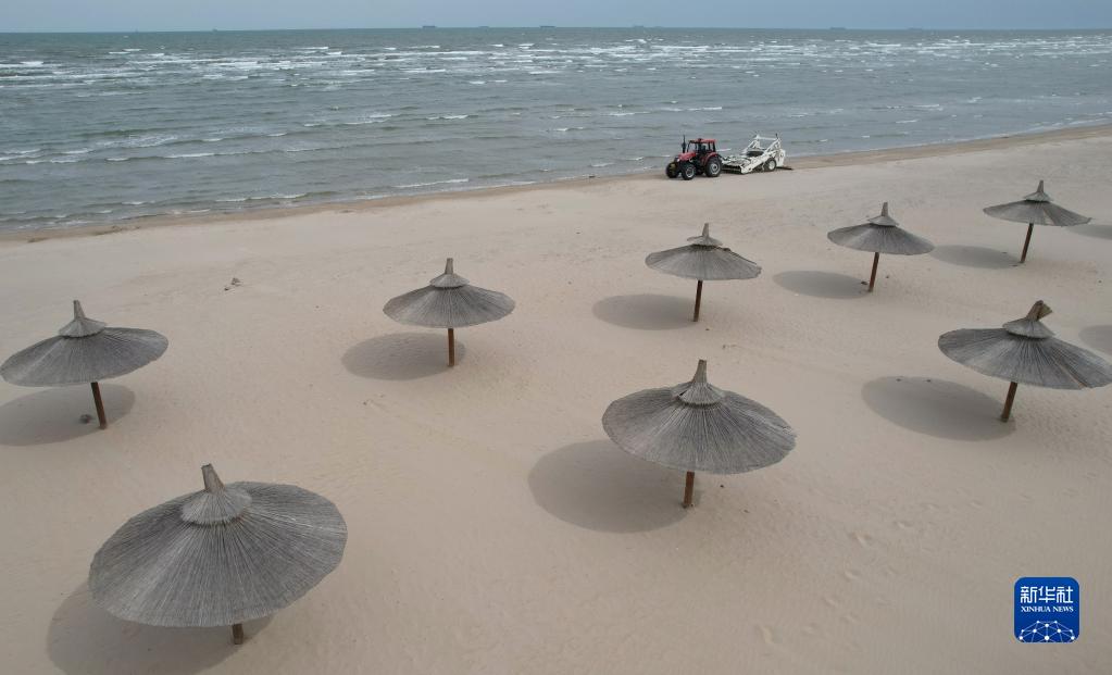 近日,旅游勝地河北省秦皇島市各浴場(chǎng)的工人開(kāi)始對浴場(chǎng)的沙灘進(jìn)行整理,精篩細沙,檢修旅游設備,準備迎接八方來(lái)客。