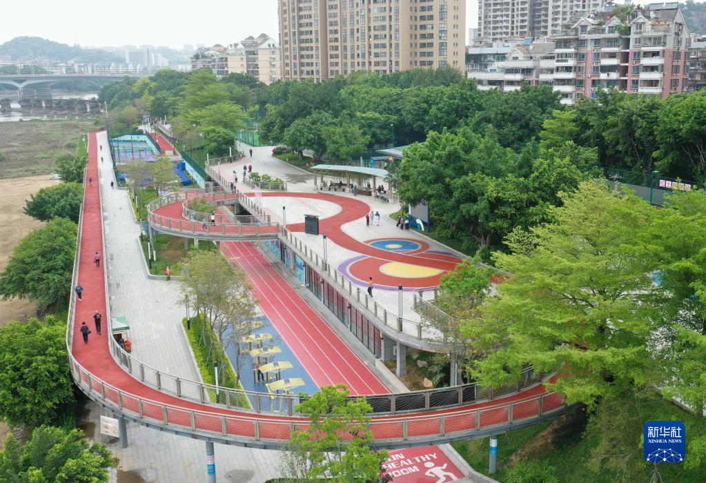 4月24日拍攝的福州市鼓樓區西河智慧體育公園內智慧跑道、智慧健身器材及健身驛站等(無(wú)人機照片)。