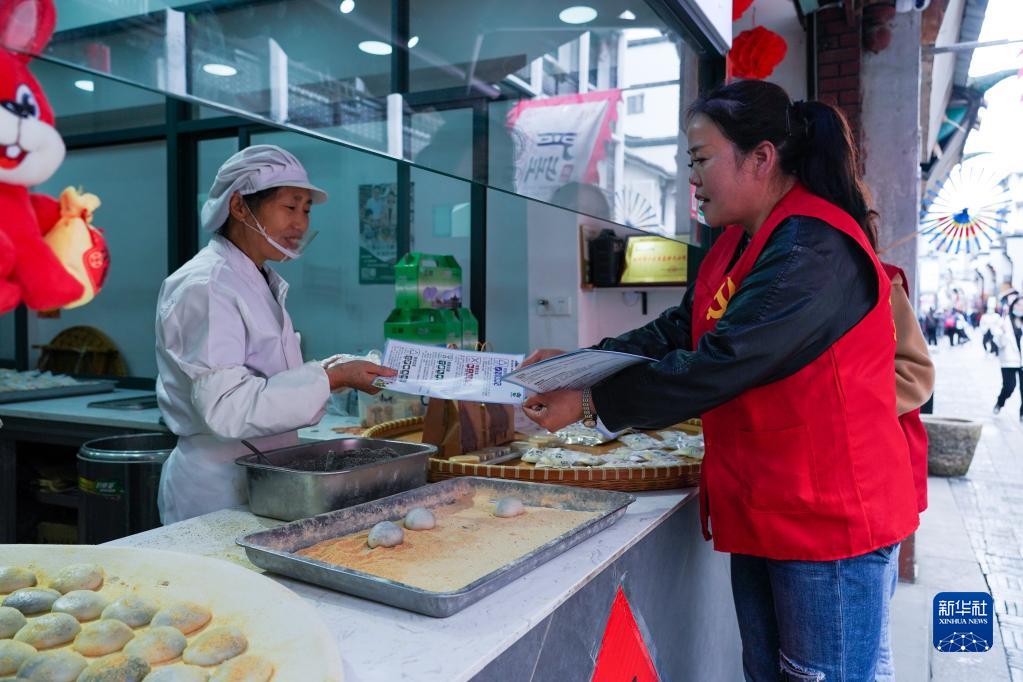 4月24日,在建德市梅城鎮古街,志愿者在進(jìn)行亞運知識宣傳。