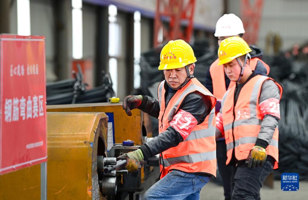4月24日,建設者參加鋼筋彎曲項目比賽。