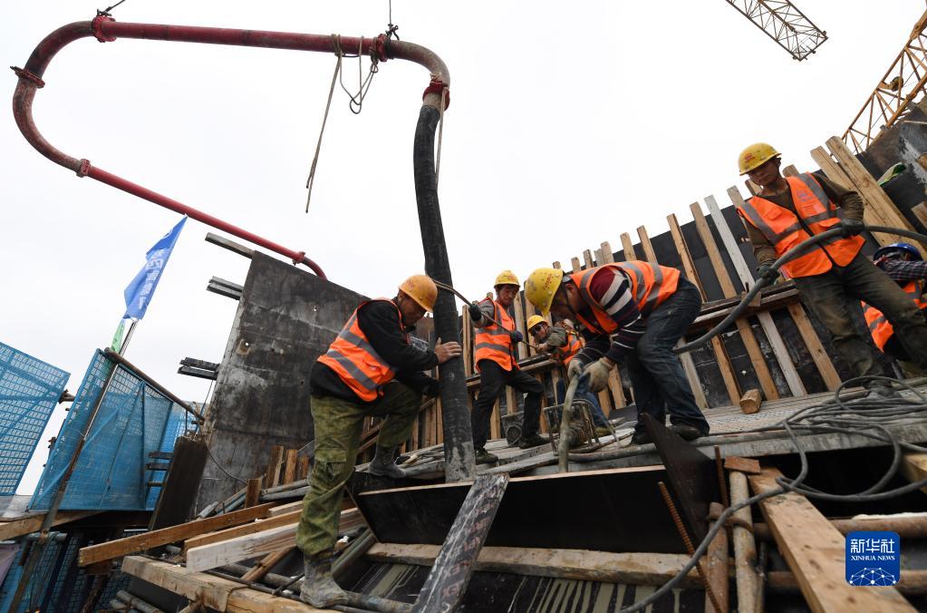 4月24日,在廣西上橫高速公路西津郁江特大橋建設現場(chǎng),中鐵四局集團工人在進(jìn)行主塔封頂施工。