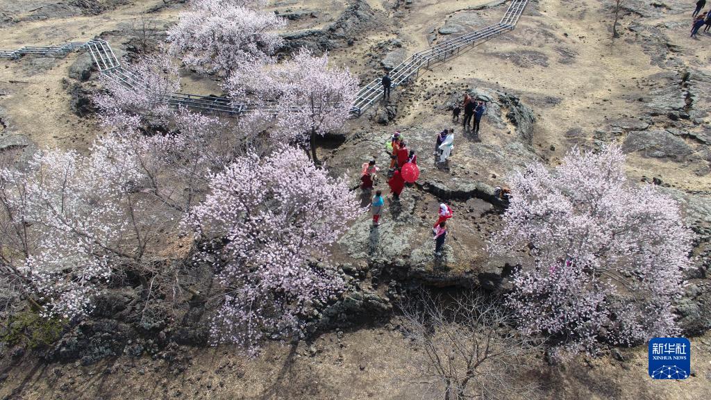 4月24日,游客在鏡泊湖世界地質(zhì)公園游玩(無(wú)人機照片)。