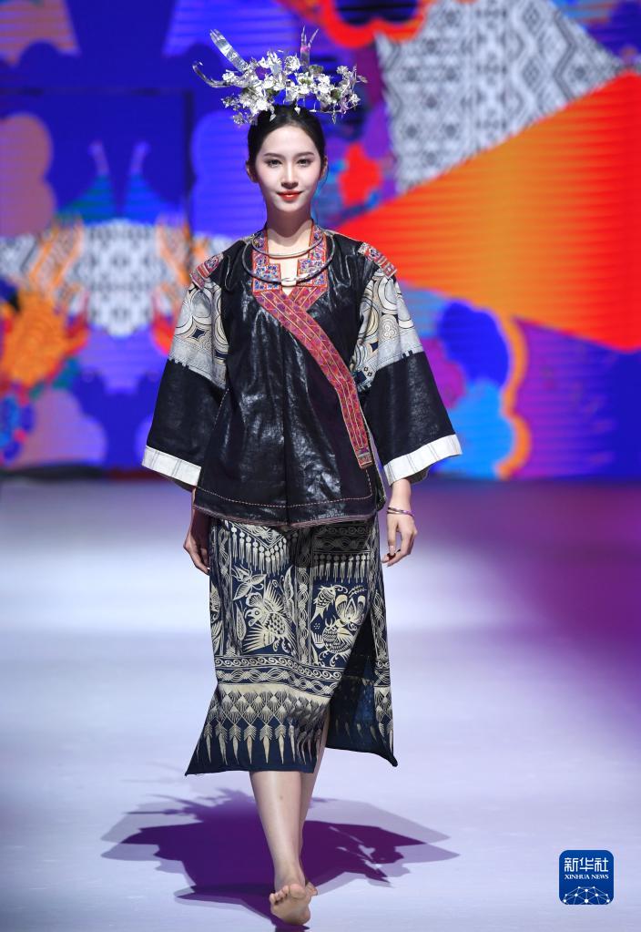 模特在廣西南寧市廣西文化藝術(shù)中心展示民族元素服飾(4月24日攝)。