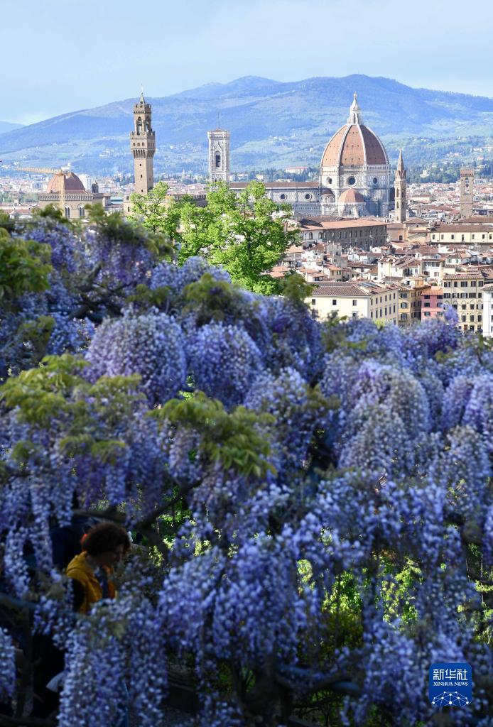 意大利佛羅倫薩巴爾迪尼花園近日紫藤花盛放,吸引眾多游客前來(lái)觀(guān)賞。