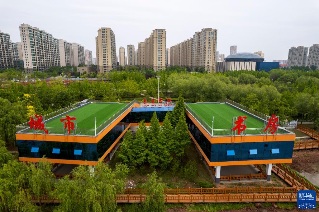 4月24日在山東省臨沂市臨沭縣拍攝的城市書(shū)房(無(wú)人機照片)。
