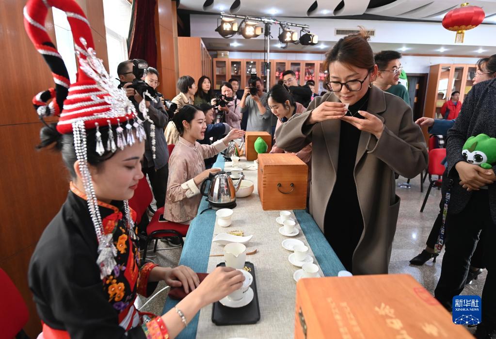 4月25日,媒體記者、與會(huì )嘉賓在茶文化節新聞發(fā)布會(huì )后品嘗、了解高山白茶。