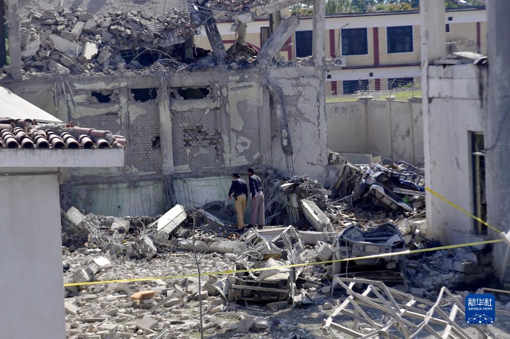 4月25日,在巴基斯坦斯瓦特地區,警察檢查爆炸襲擊現場(chǎng)。