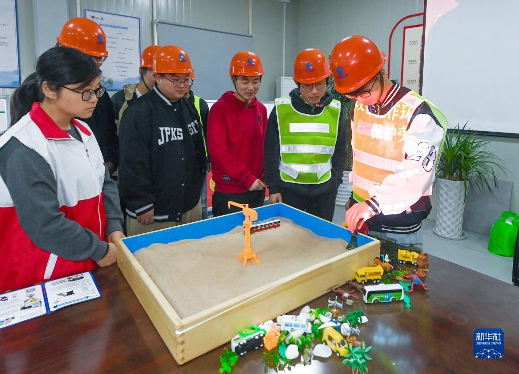 4月25日,龍泉街道心理咨詢(xún)師(左一)用心理沙盤(pán)游戲引導工地勞動(dòng)者釋放壓力,促進(jìn)心理健康。