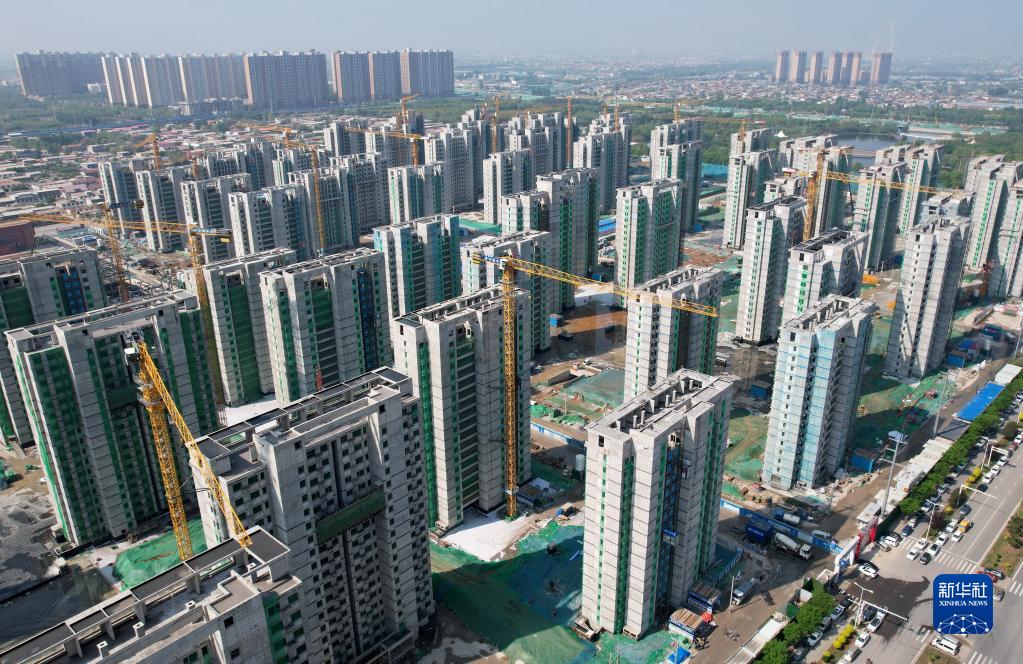 4月25日拍攝的中鐵二十局承建的石家莊市高新技術(shù)產(chǎn)業(yè)開(kāi)發(fā)區集中安置區棚戶(hù)區改造項目建設工地(無(wú)人機照片)。