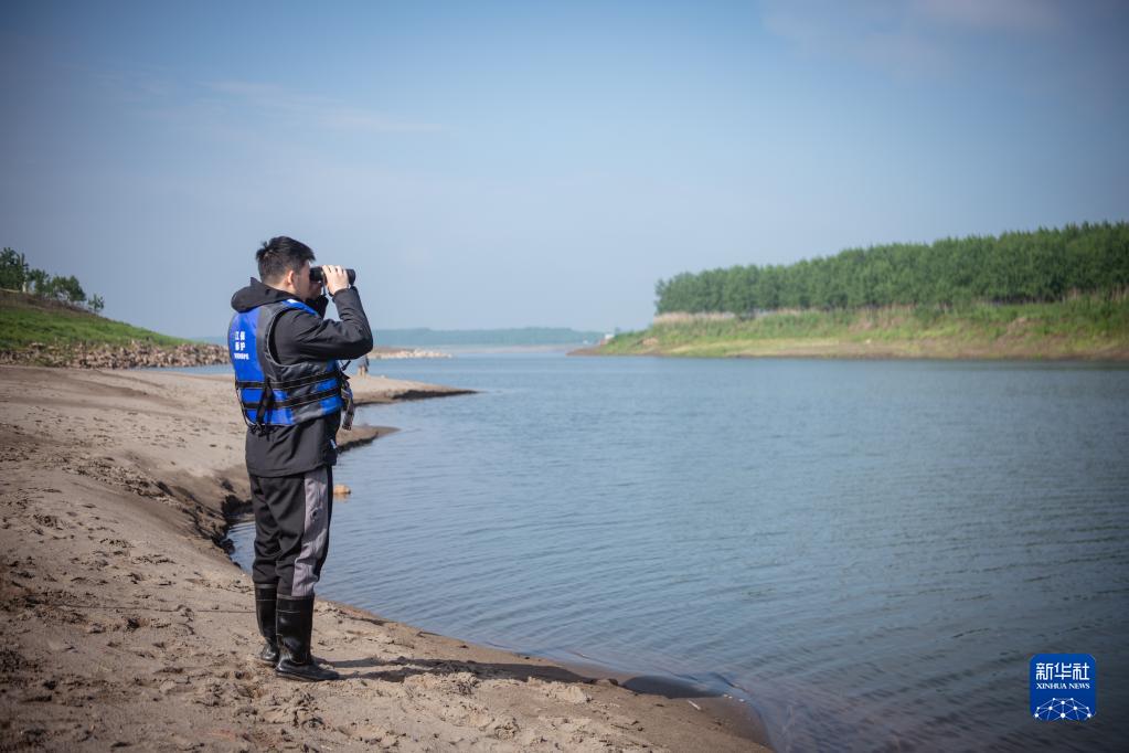 4月25日,工作人員在放歸活動(dòng)結束后觀(guān)測江豚情況。
