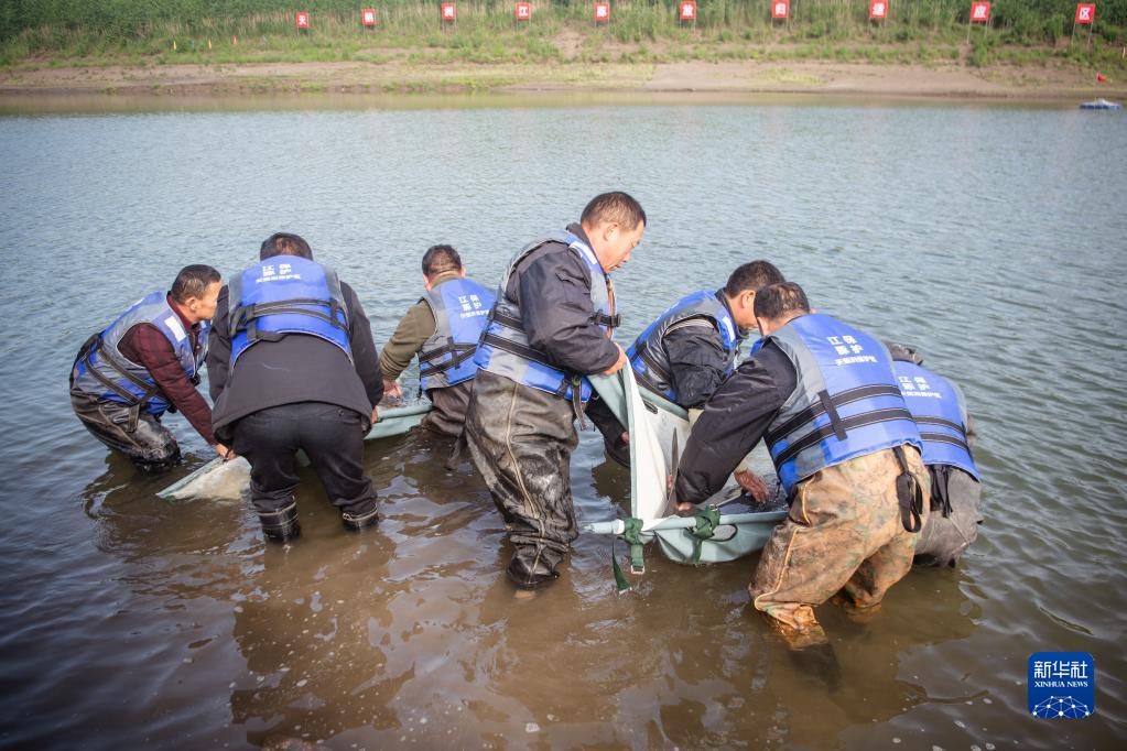 4月25日,工作人員放歸江豚。