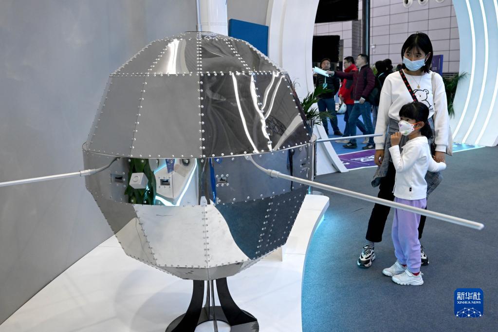 4月24日,觀(guān)眾在科普展區參觀(guān)東方紅一號衛星模型。