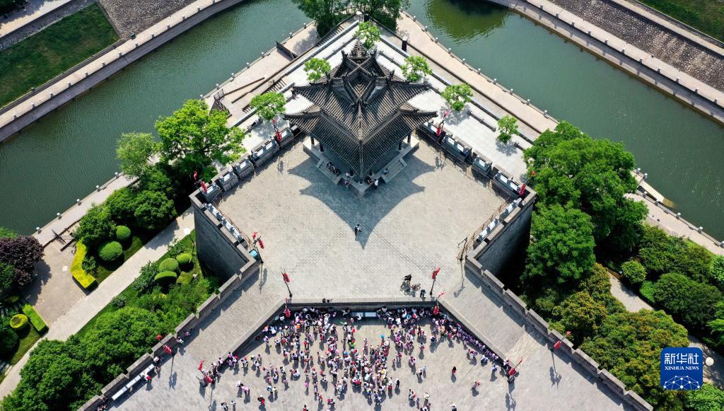 西安明城墻東南角樓(4月19日攝,無(wú)人機照片)。