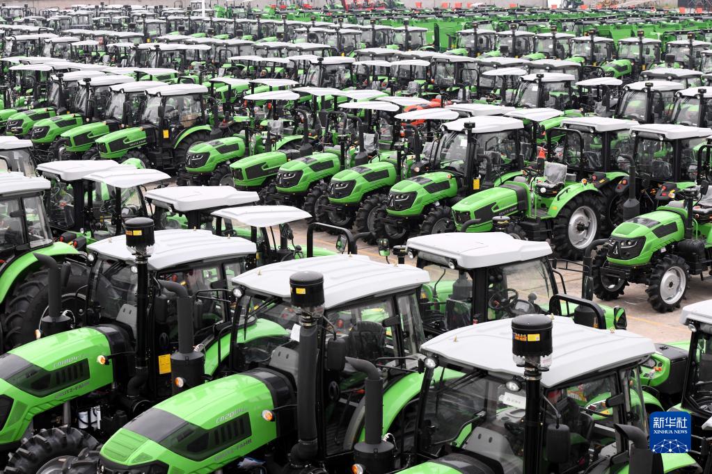 4月25日在山東省臨沂市臨沭縣一家農業(yè)機械公司拍攝的拖拉機。