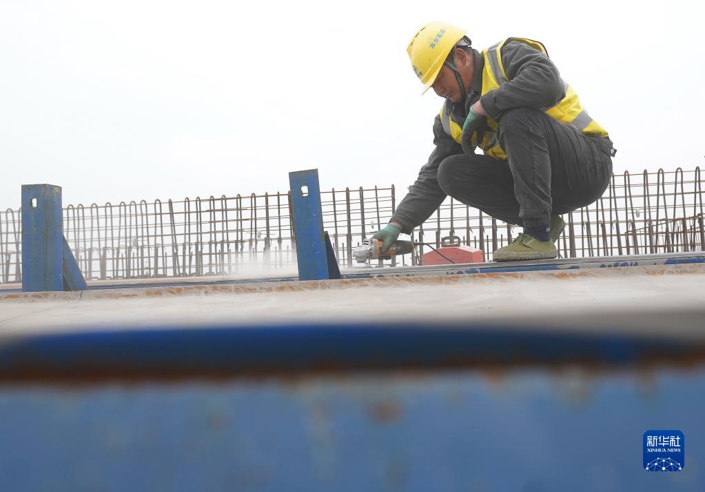 4月25日,中鐵二十局建設者在蘇臺高速公路七都至桃源段ST-QL5標施工現場(chǎng)打磨模板。