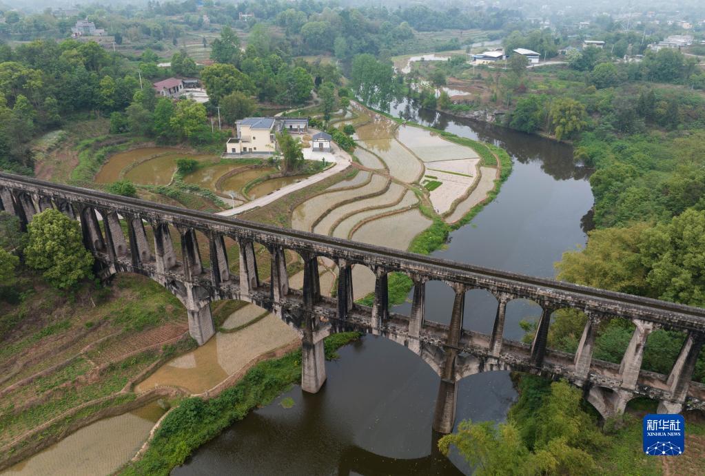 目前,四川省瀘縣正值插秧時(shí)節,有“人工天河”之稱(chēng)的瀘縣引水渡槽越過(guò)山丘、穿過(guò)農田,仍在引水灌溉中發(fā)揮重要作用。