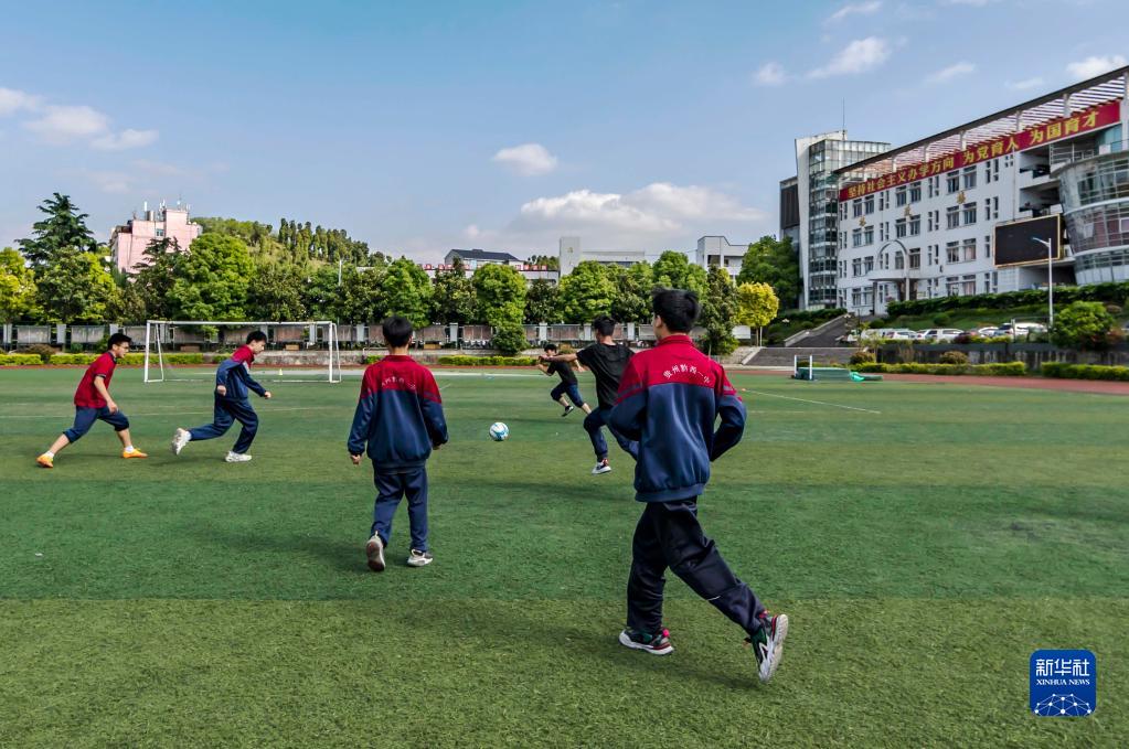 4月25日,在黔西第一中學(xué),學(xué)生在進(jìn)行足球模塊實(shí)戰練習。