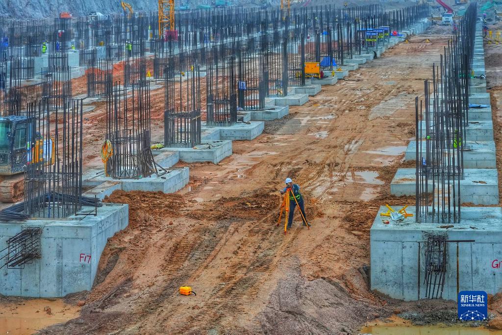 中鐵上海工程局施工人員在深圳地鐵5號線(xiàn)上水徑停車(chē)場(chǎng)建設現場(chǎng)測量(4月25日攝)。