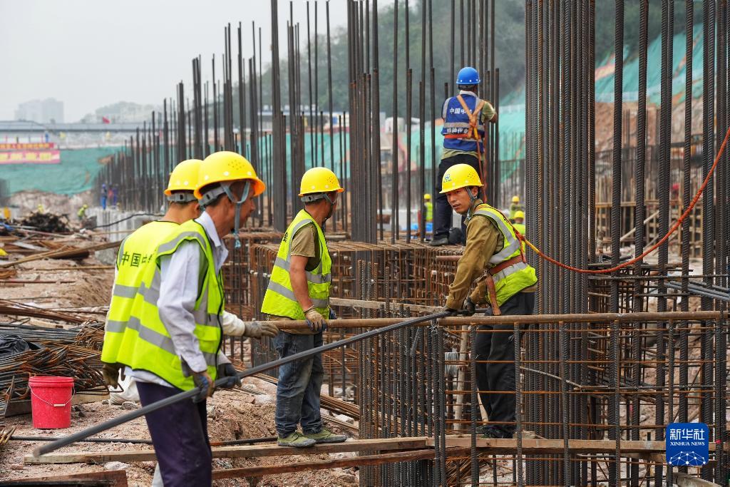 中鐵上海工程局施工人員在深圳地鐵5號線(xiàn)上水徑停車(chē)場(chǎng)建設現場(chǎng)搬運鋼筋(4月25日攝)。