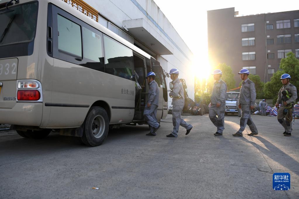 清晨六點(diǎn)多,電力工人劉李家(中)、段信陽(yáng)(左二)、王春龍(右一)準備乘車(chē)趕往施工現場(chǎng)(4月20日攝)。