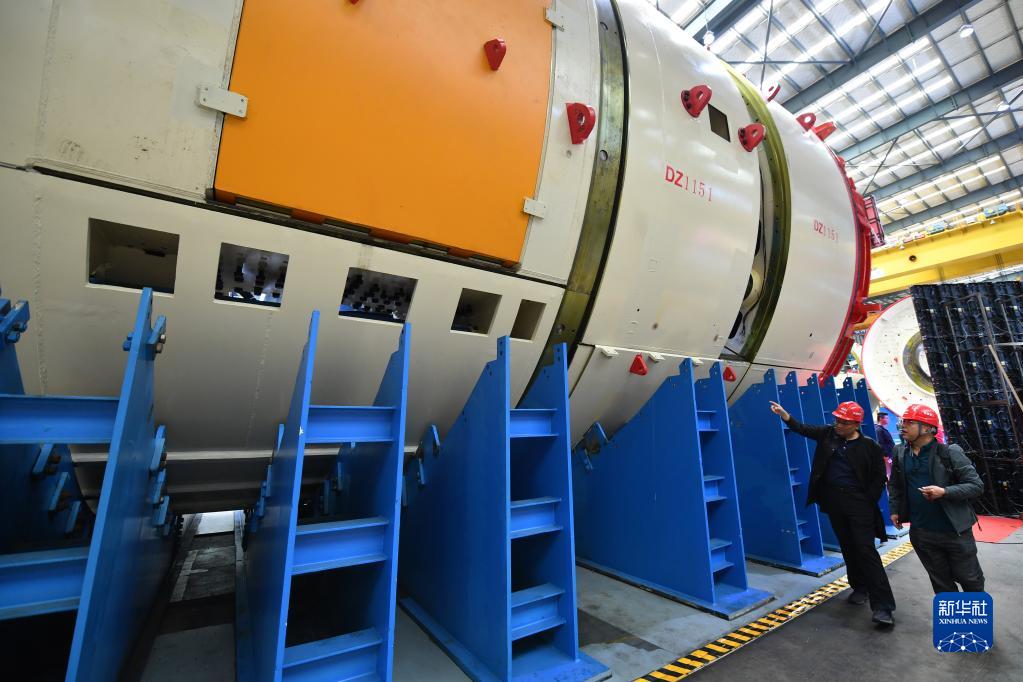 4月26日,工作人員在鐵建重工長(cháng)沙第二產(chǎn)業(yè)園參觀(guān)“鐵兵廣花6號”。