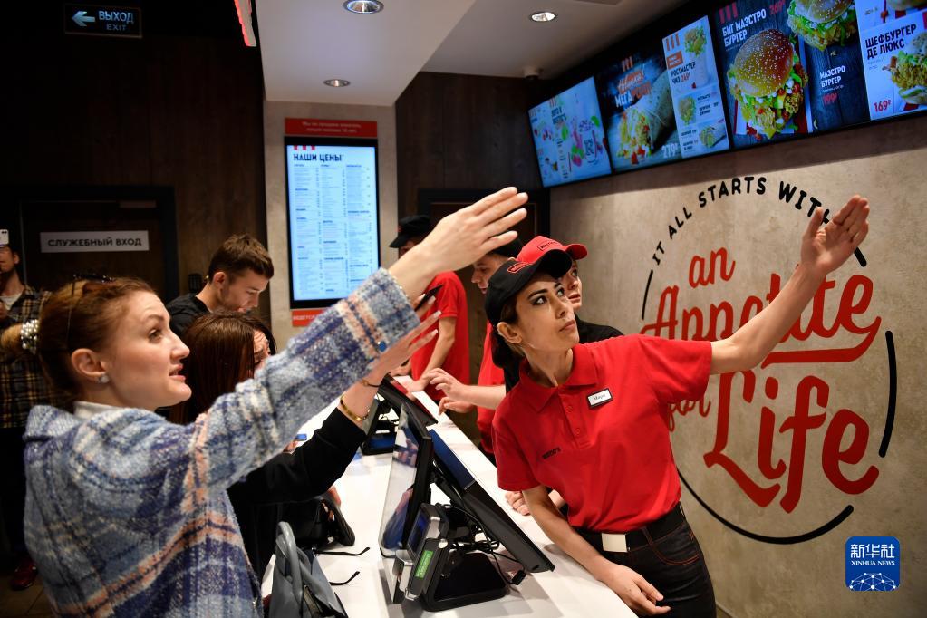 4月25日,顧客在俄羅斯首都莫斯科的“羅斯蒂克”餐廳點(diǎn)餐。