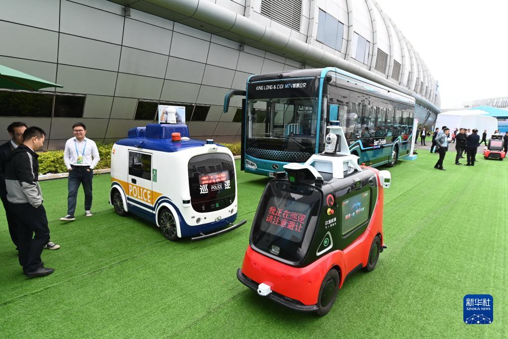 4月26日在第六屆數字中國建設成果展覽會(huì )上拍攝的多種智慧車(chē)輛。