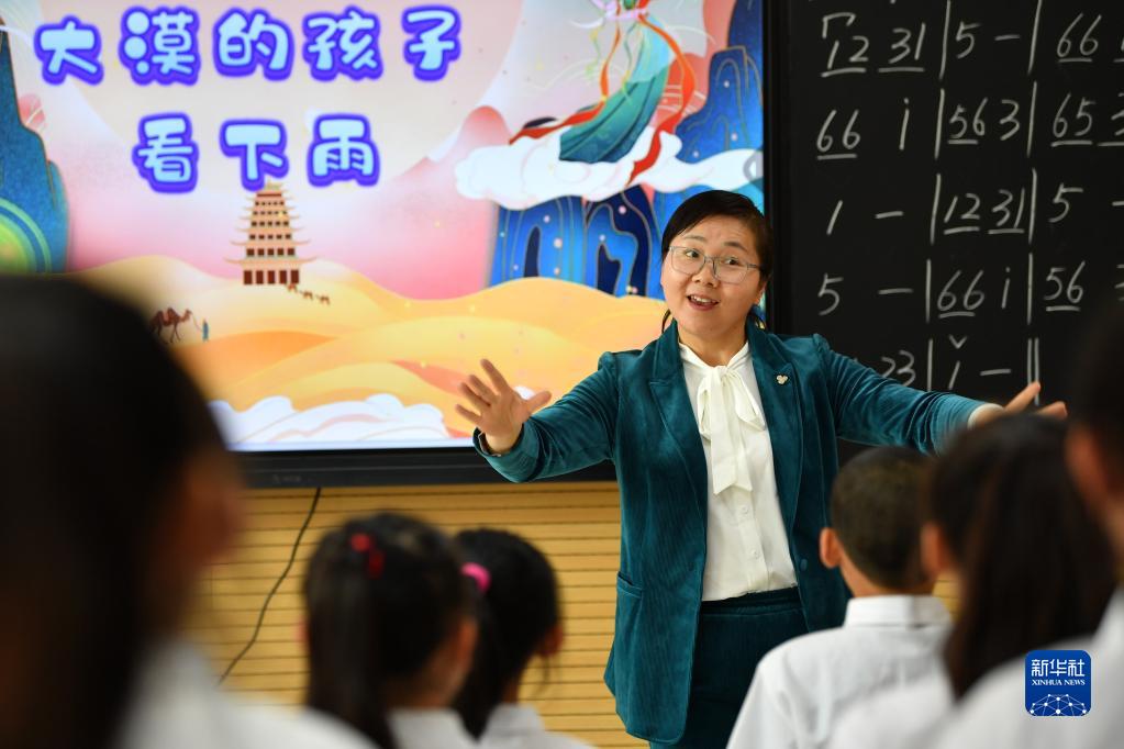 4月26日,在敦煌市西關(guān)小學(xué),音樂(lè )教師羅莉在課后服務(wù)時(shí)間指導合唱團的學(xué)生練習合唱。