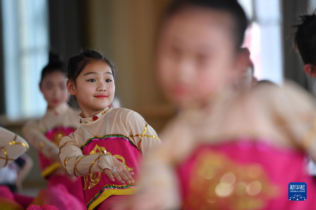 4月26日,在敦煌市西關(guān)小學(xué),舞蹈社團的學(xué)生在課后服務(wù)時(shí)間練習敦煌舞。