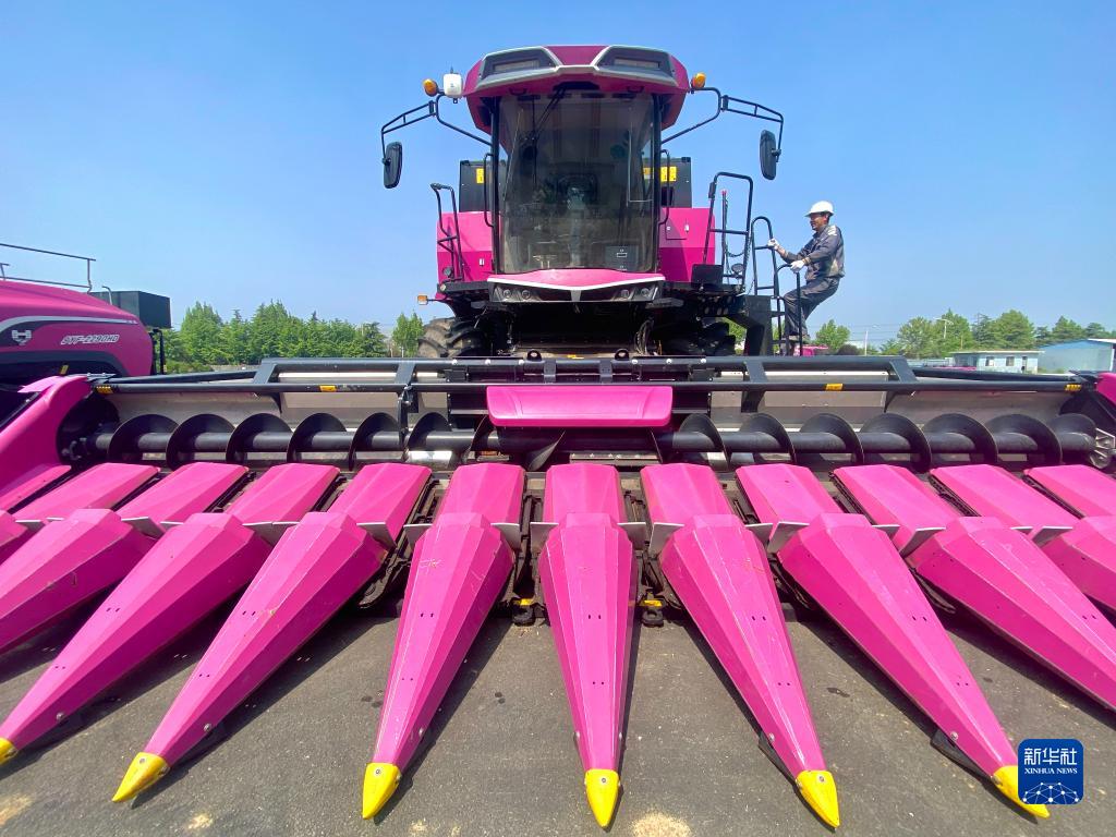 4月26日,在山東省臨沂市臨沭縣一家農機企業(yè),工人在調試機械。