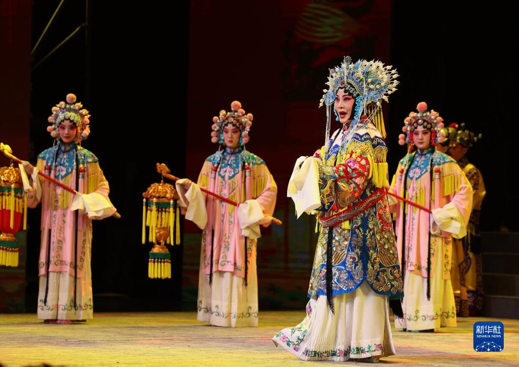 4月26日,演員在開(kāi)幕式演出現場(chǎng)表演秦腔、晉劇、滇劇、河北梆子等多劇種版《大登殿》。